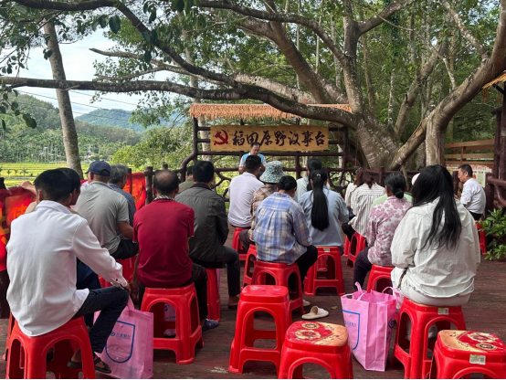 另一队在村委会现场组织活动,兴业银行三亚分行工作人员先是结合真实案例,向村民讲解电信网络诈骗的常见手法与防范措施,提醒大家不轻信陌生电话、不随意转账汇款。随后也现场普及基础金融知识,讲解储蓄、理财、防诈骗等内容,帮助村民提高风险意识和理财能力。同时,志愿者们向群众发放反诈宣传折页和小礼品,气氛热烈,互动频频。